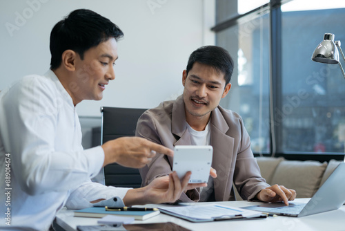 Fototapeta premium Business team working on a project in the office or reviewing and discussing a business project.