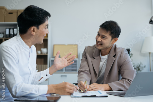 Fototapeta premium Business team working on a project in the office or reviewing and discussing a business project.