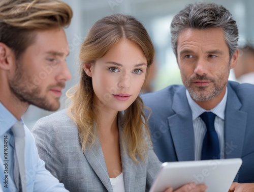 © Dzikrul Husnani, Fototapeta premium Business Team Working Together Looking at Digital Tablet