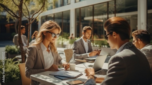 © visoot, Fototapeta premium Business Team Working Together Outside.