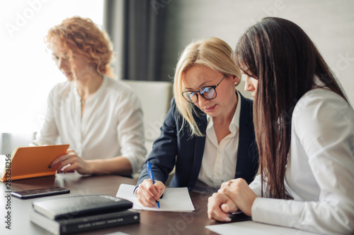 Fototapeta premium business, teamwork and women concept - female team of young caucasian women...