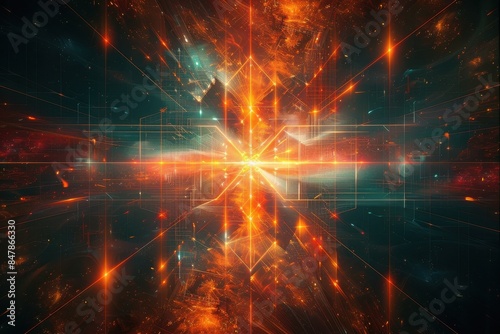 © itchaznong, Obraz premium Business technology growth concept. Abstract arrow neon light background