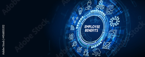 © photon_photo, Obraz premium Business, Technology, Internet and network concept. Shows the inscription: EMPLOYEE BENEFITS.