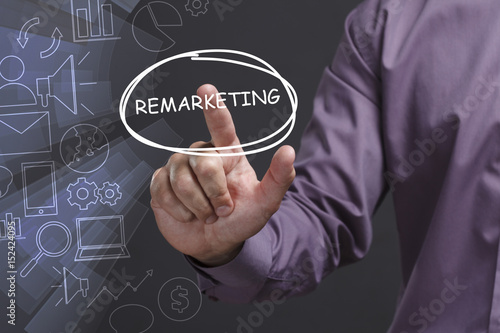 © photon_photo, Fototapeta premium Business, Technology, Internet and network concept. Young businessman shows the word: Remarketing