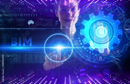 Obraz premium Business, technology, internet and network concept. Young businessman thinks over the steps for successful growth: BIM