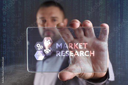 © photon_photo, Fototapeta premium Business, Technology, Internet and network concept. Young businessman working on a virtual screen of the future and sees the inscription: Market research