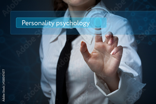 © putilov_denis, Fototapeta premium Business, technology, internet and networking concept. Business woman presses a button on the virtual screen: Personality psychology