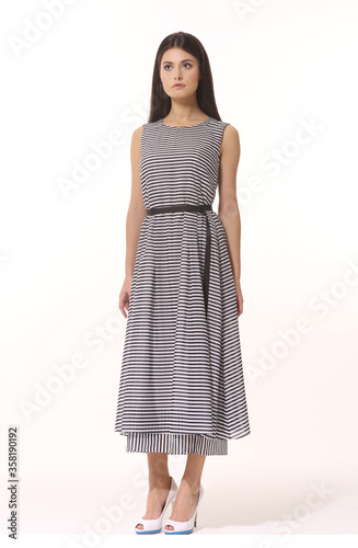 Fototapeta premium business woman executive posing in formal striped long skirt summer dress