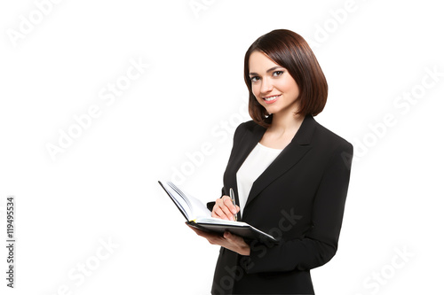 Fototapeta premium Business woman holding hands in daily, isolated on white background
