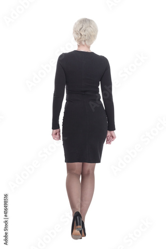 Fototapeta premium business woman in a black dress walking away. isolated on a white background.