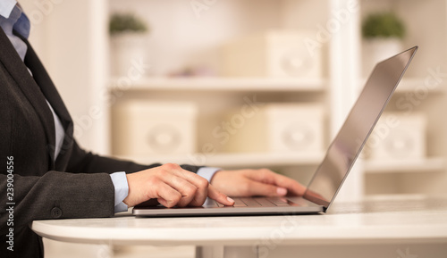 Fototapeta premium Business woman in homey environment using laptop with financial report concept