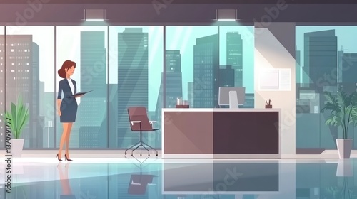 © Z Z K V V C Art, Obraz premium Business woman in modern office cityscape