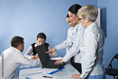 © Gabriel Blaj, Fototapeta premium Business woman pointing to laptop at meeting