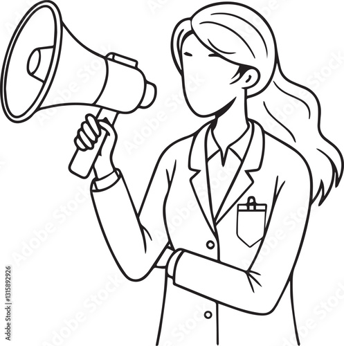 Fototapeta premium Business woman speaking through a megaphone. Outline vector illustration.
