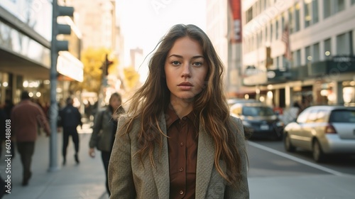 © Tommy, Fototapeta premium Business woman walking on the street. Smart clothes. Generative AI.