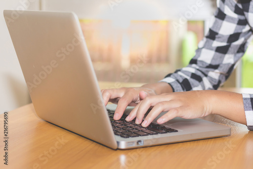 Fototapeta premium Business women working at office with laptop and documents on his desk,...