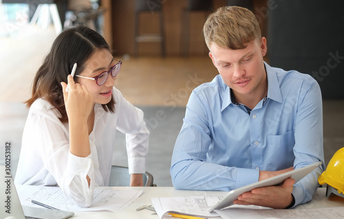 © wattana, Fototapeta premium Business working in office with documents and laptop people Consulting and business planning.