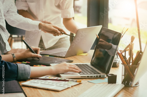 Fototapeta premium Business working with startup concept, group of people analysis data and meeting in modern office.