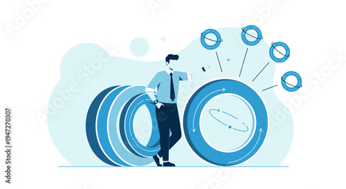 Fototapeta premium Businessman Analyzing Circular Progress Charts and Data Visualization