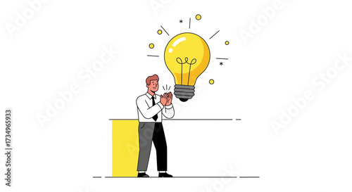 Obraz premium Businessman Celebrates Brilliant Idea With Bright Lightbulb Symbolizing...