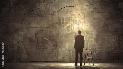 Obraz premium Businessman contemplating financial charts on a wall.