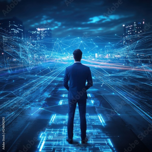 © Tee, Obraz premium Businessman contemplating future technology.