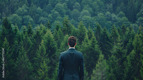 © l1gend, Naklejka premium Businessman Contemplating in Timberland Forest