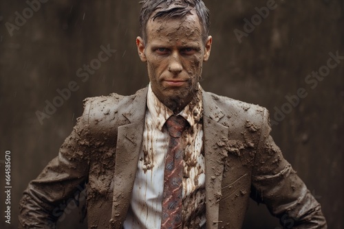 © Bargais, Fototapeta premium Businessman covered in mud.