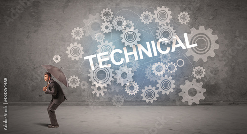 Fototapeta premium Businessman defending with umbrella