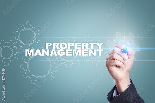 Fototapeta premium Businessman drawing on virtual screen. property management concept.