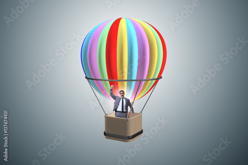 Fototapeta premium Businessman flying on balloon in challenge concept