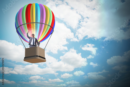 © Elnur, Naklejka premium Businessman flying on balloon in challenge concept