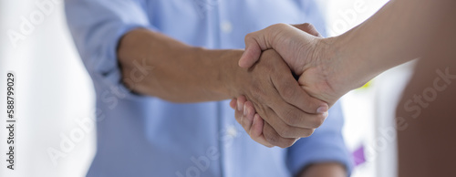 © David, Fototapeta premium Businessman handshake for teamwork of business merger and acquisition,successful negotiate,hand shake,two businessman shake hand with partner to celebration partnership and business deal concept