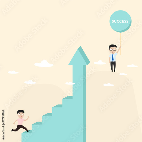 © sichon, Obraz premium Businessman holding flying balloon to success business. Business competitive advantage for winning strategy and success concept