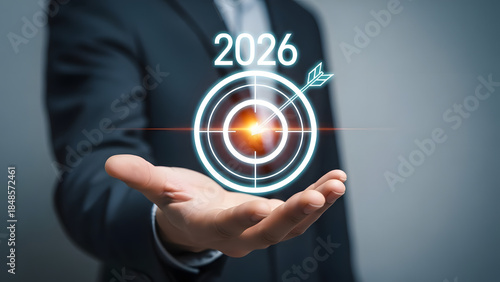 Fototapeta premium Businessman Holding Futuristic Digital Interface Showing 2026 Technology Vision.