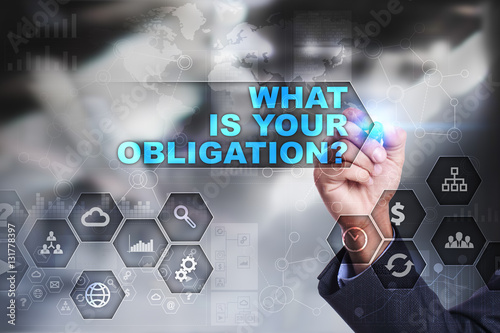Fototapeta premium Businessman is drawing on virtual screen. what is your obligation concept.