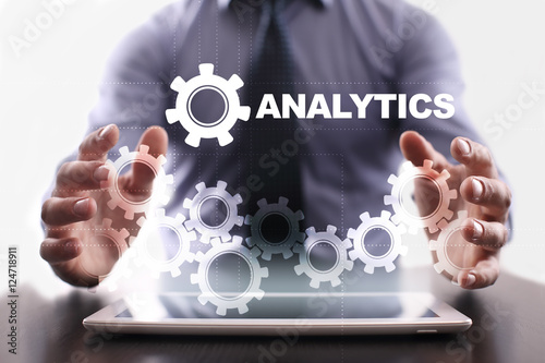 © WrightStudio, Fototapeta premium Businessman is using tablet pc and selecting analytics