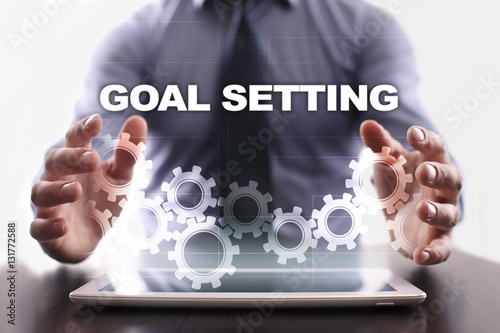 © WrightStudio, Fototapeta premium Businessman is using tablet pc and selecting goal setting.