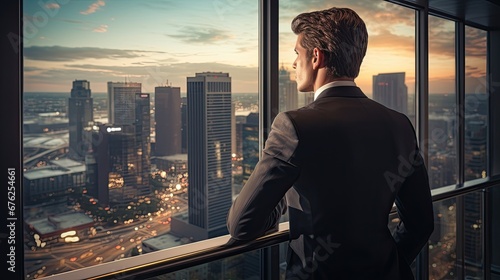 © Creative Station, Fototapeta premium Businessman looking out from a balcony.