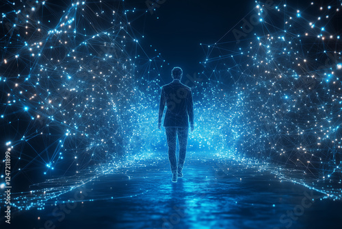 © Ala, Fototapeta premium Businessman navigating a digital world of bright connections