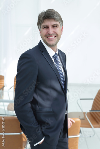 © ASDF, Fototapeta premium businessman on an empty office background