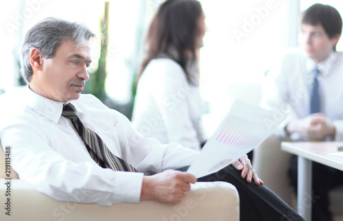 © yurolaitsalbert, Obraz premium businessman pondering a document sitting in a modern office