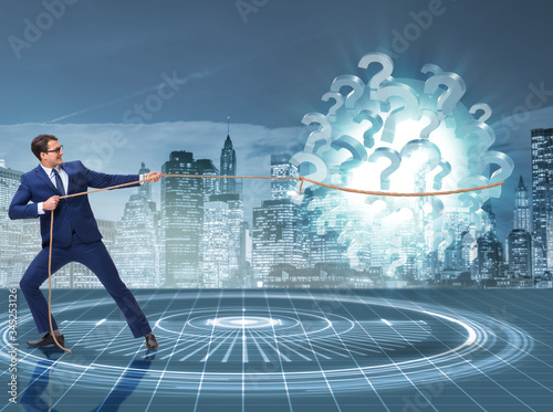 © Elnur, Obraz premium Businessman pulling question marks in uncertainty concept