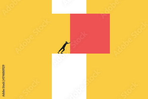 Fototapeta premium Businessman push block. concept of Business achievement , completion,...