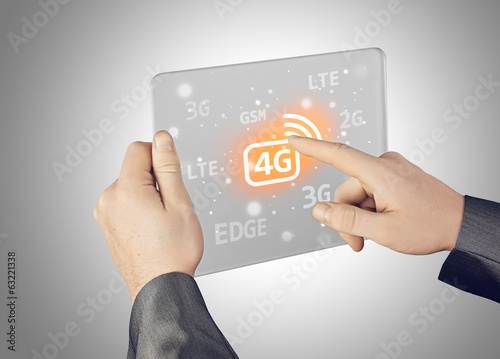 © Natalia Merzlyakova, Fototapeta premium Businessman pushing 4g
