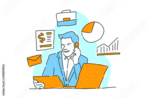 © Edwin, Fototapeta premium businessman read audit report hand drawn illustration