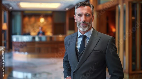 Naklejka premium Businessman Reception: Professional Check-In Experience