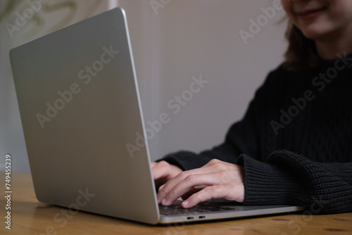 © Bordinthorn, Fototapeta premium Businessman's hands are finger point to Searching for information. Using laptop with your website. Data Search Technology Search Engine Optimization. Online business search a job for work.