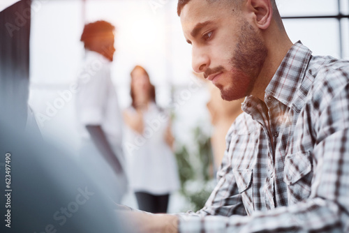 Obraz premium Businessman's hands Notepad and documents. office work concept
