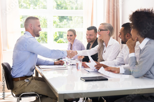 Obraz premium Businessman Shaking Hands At Interview